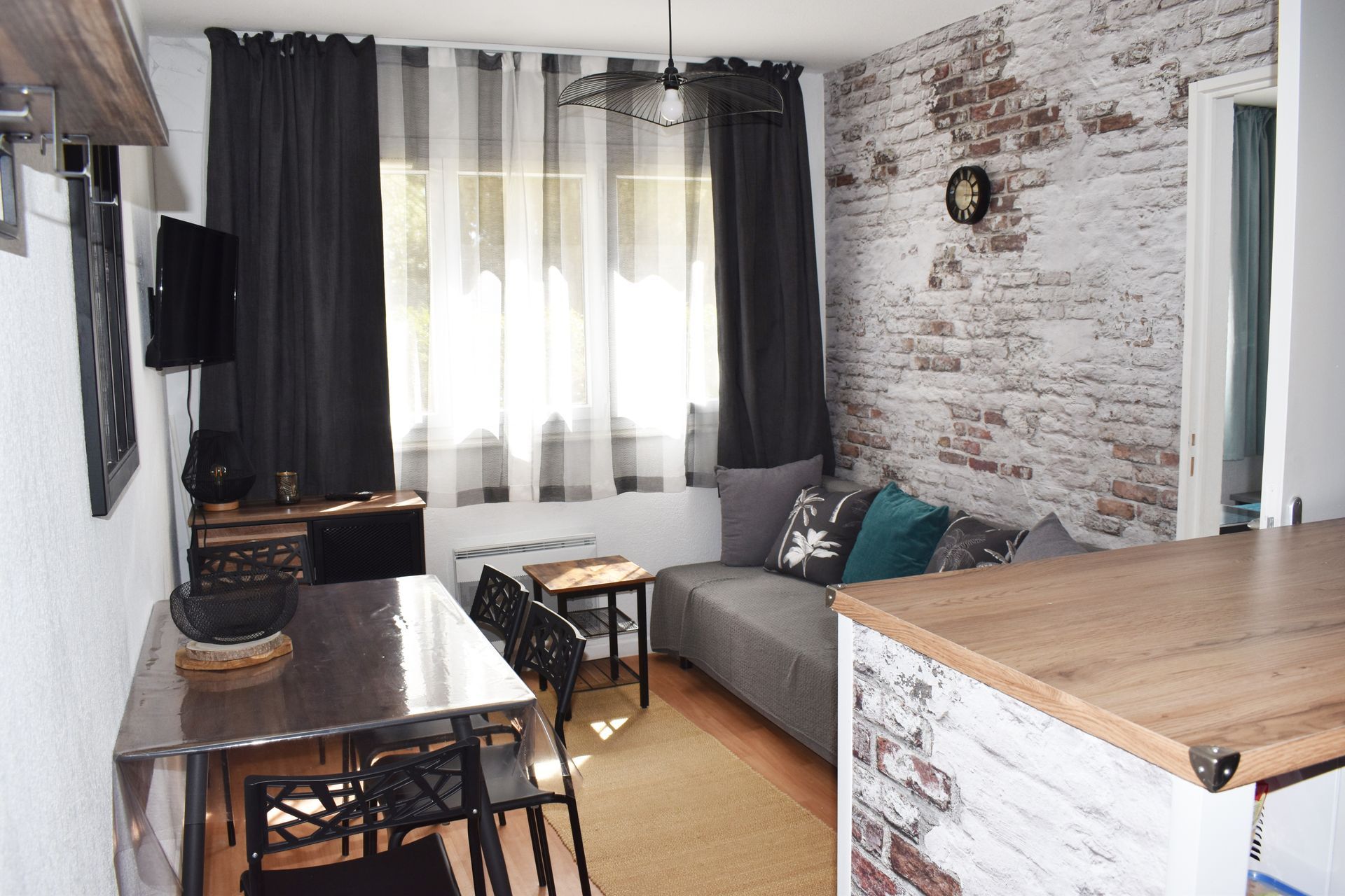 Composition : 1 living room with kitchenette and sofa bed, 1 bedroom with 140 x 190 cm bed, 1 bathroom with WC.
